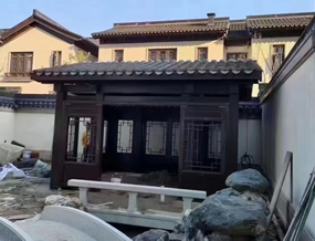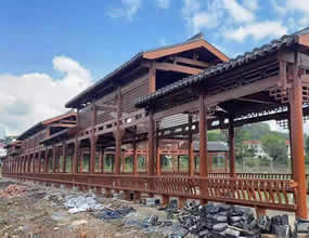 這個項(xiàng)目是湖北黃崗市的一個村里,定制的是一套古建小青瓦防腐木長廊,尺寸是長度11米,寬度為2.8米,總面積為30個平方米左右。陳總在網(wǎng)上找到我們